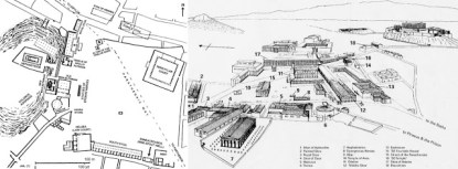 | Ágora Griega. Plano y vista de la ubicación de los edificios y la conformación espacial. |
