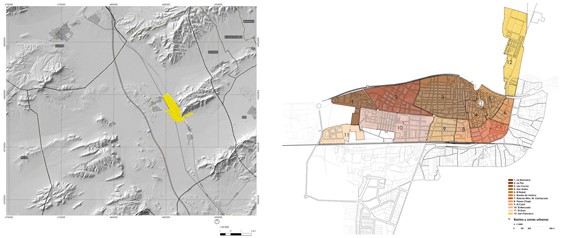 A partir de los años sesenta con el nuevo planeamiento y el desarrollismo de ésta época la ciudad empieza a crecer hacia el Norte, configurándose a partir sus límites preexistentes: la Sierra de la Villa al Este -en cuyas faldas se asienta el casco antiguo-, la infraestructura ferroviaria al Oeste y los terrenos agrícolas al Sur.