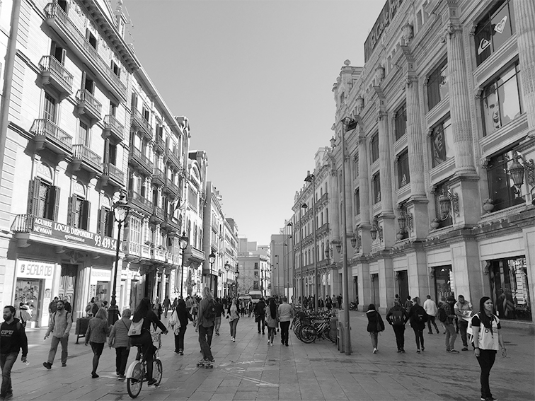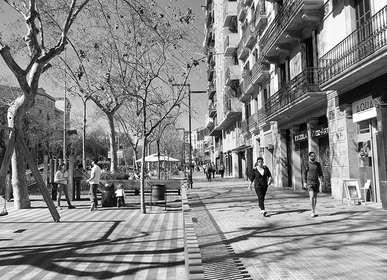 Un gran espacio público, pensamos en una plaza o en un parque, un trozo de espacio cuyo uso corresponde con la función que le adjudica su nombre, aunque no siempre es así. La calle y la acera, otro trozo de espacio asociado al lugar del auto cuando lo es también para las personas; la calle también es un espacio público. Un espacio lineal pero serpenteante, un salón longitudinal que nos conduce al portal de casa, a la frutería, a la farmacia, a la parada del bus, a la puerta del trabajo, al aparcamiento, al colegio… Si además, en esa calle hay árboles que refrescan una caminata en verano, unos bancos que le permiten a los abuelos sentarse para observar la vida pasar, y que nos permitan también sentarnos a su lado para que nos cuenten alguna anécdota mientras las personas entran y salen de las tiendas, de sus casas, y los niños juegan… hemos llegado a ese trozo de espacio donde nos gusta estar.