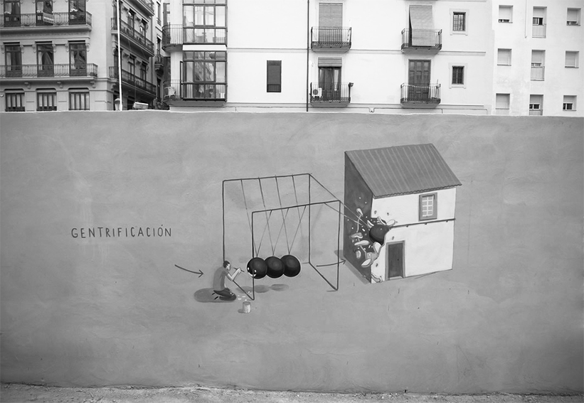 Esta idea del ciudadano regenerador, basado en un nuevo modelo productivo, vino a determinar una nueva era, ya no industrial sino del conocimiento. Superada la edad industrial, que tenía como figura al operario de la máquina, al obrero de la fábrica, la ciudad tenía que ser de los cafés alternativos, de los brunch, de las aplicaciones y las redes sociales. En esto no hay nostalgia, la historia nos comprueba —muy a nuestro pesar— que lo urbano es un negocio político-financiero, y que la regeneración viene también con el cambio en las formas de producción y consumo, uno más frenético y banal. Así comenzó a formase una burbuja especulativa que nos condujo a la gentrificación y turistificación de las ciudades.